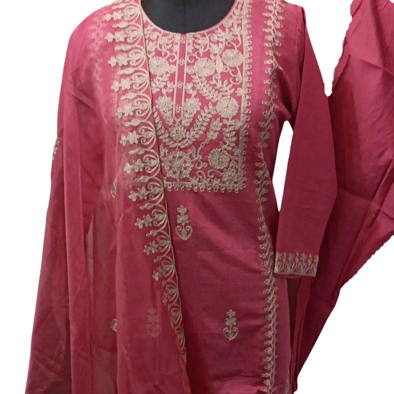 Matte Cotton Suit Set with Organza Dupatta – Peach