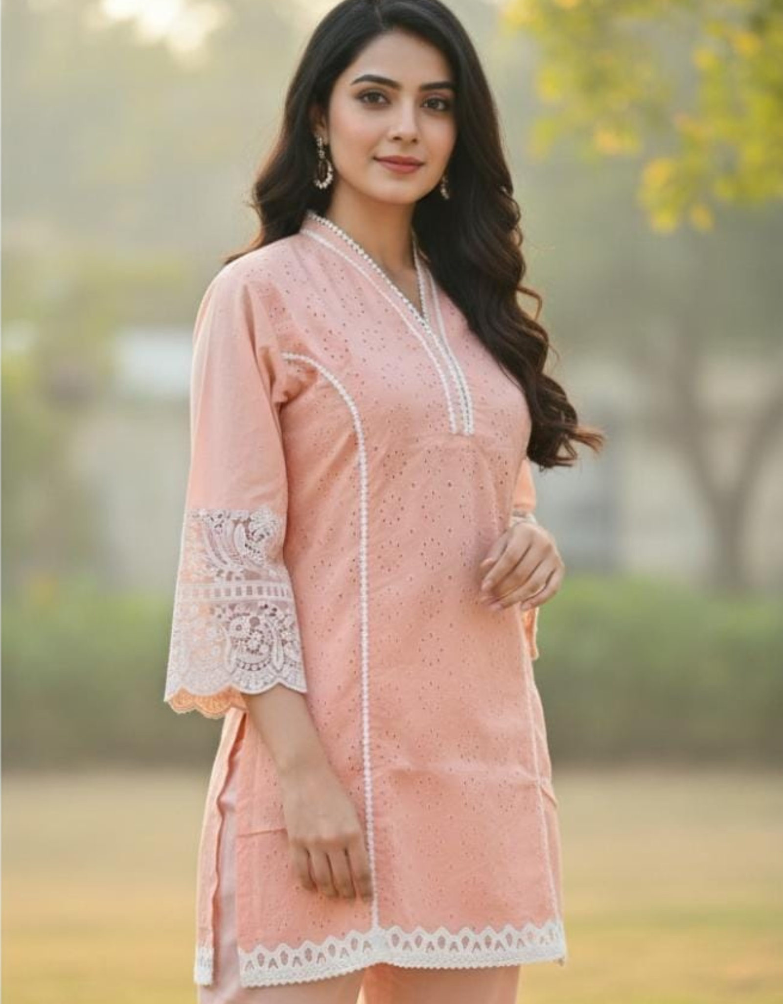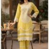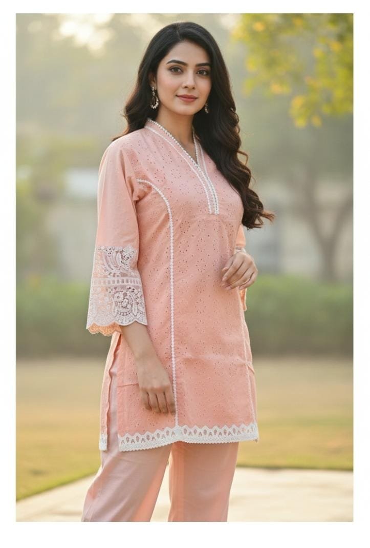 PEACH COLOUR COTTON CHICKENKARI CO-ORD SET