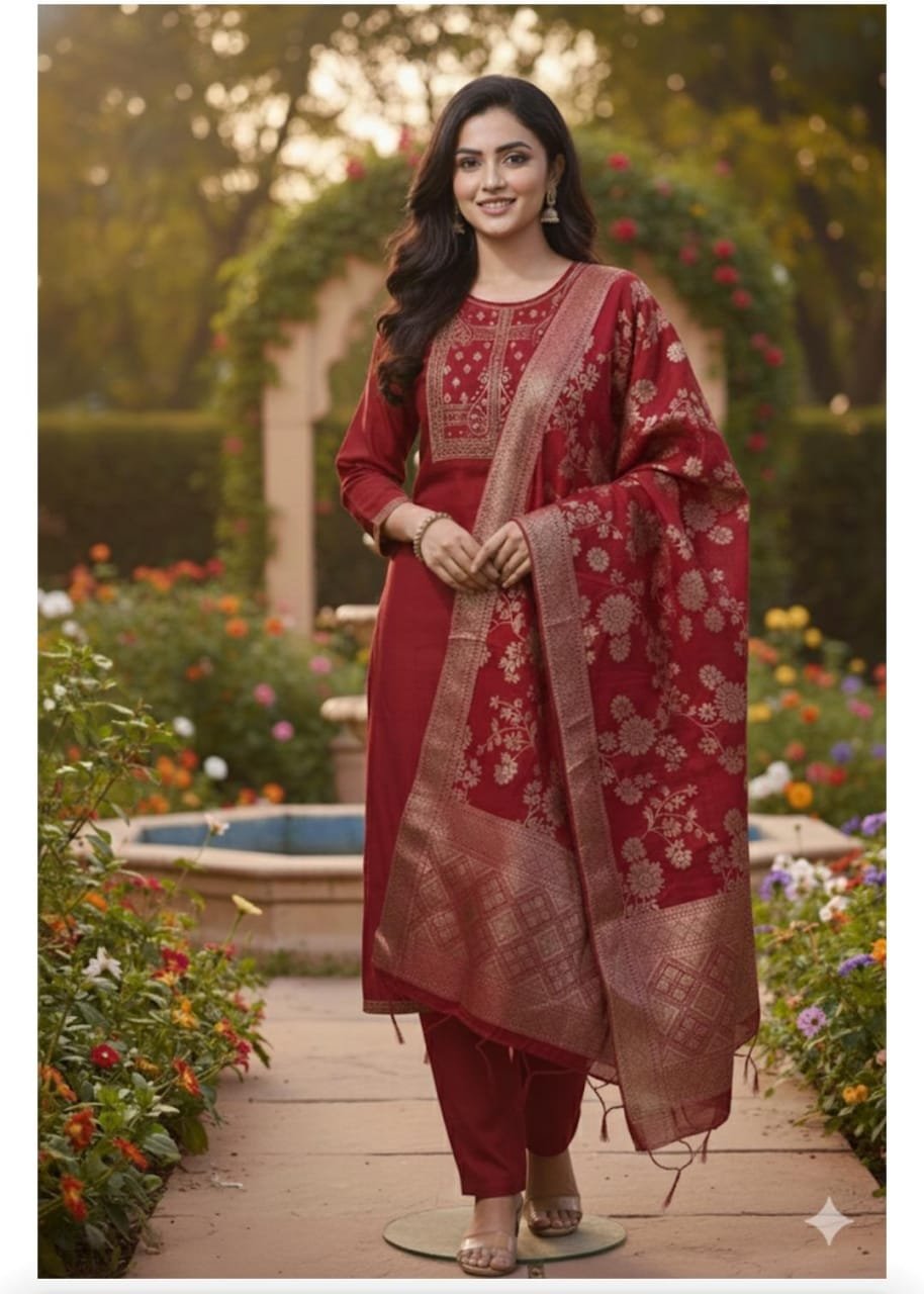 Roman Silk Suit Set with Banarasi Dupatta – Maroon