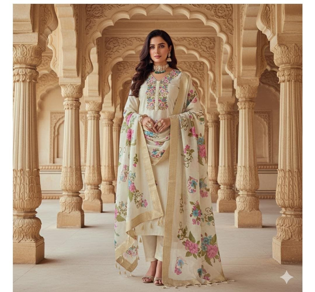 Roman Silk Suit Set with Banarasi Dupatta (Off-White)